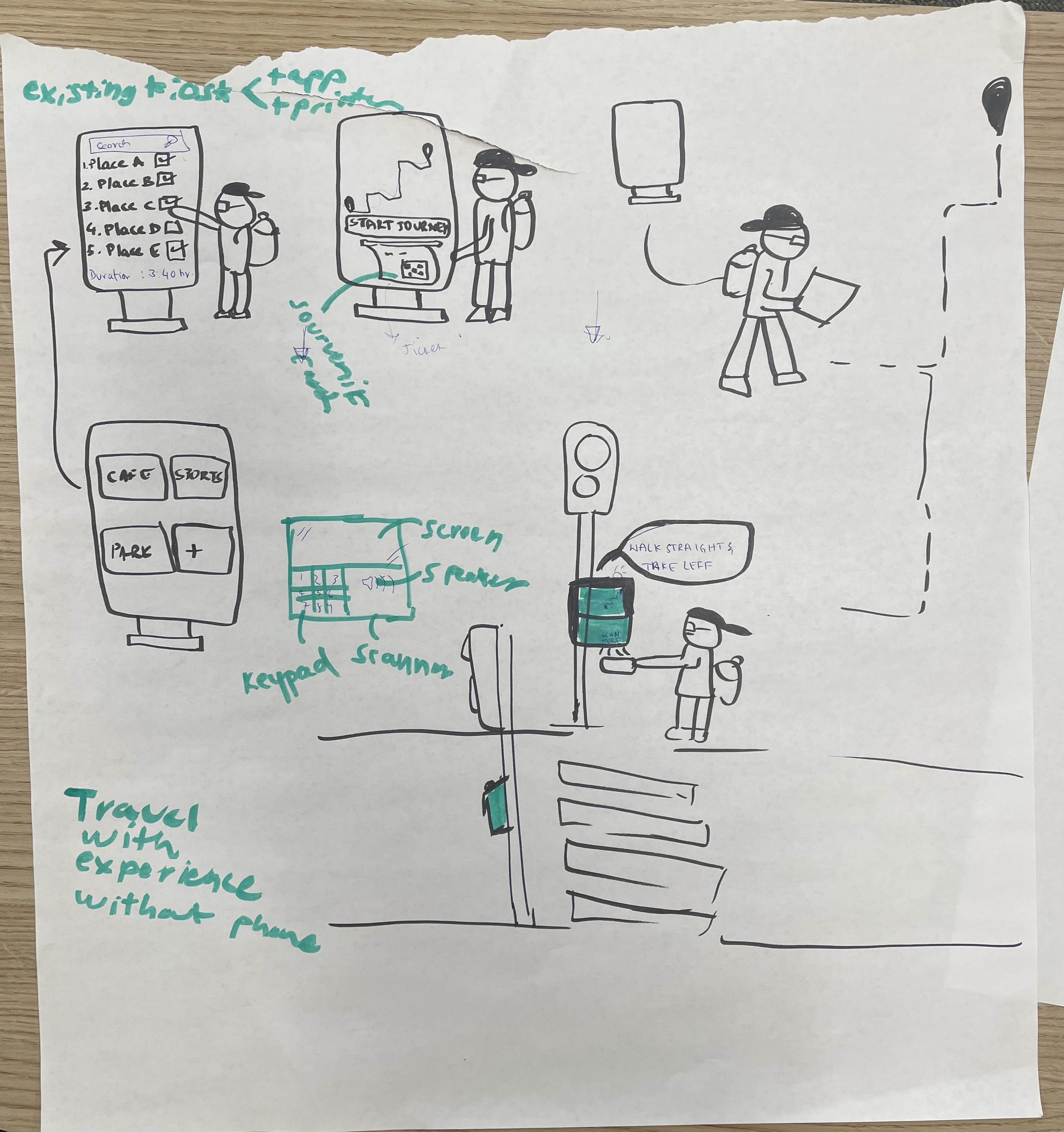 Utilisation of physical objects: to integrate into the existing kiosk(left), to add assisted device between the route (middle), and souvenir system to increase engagement(right)